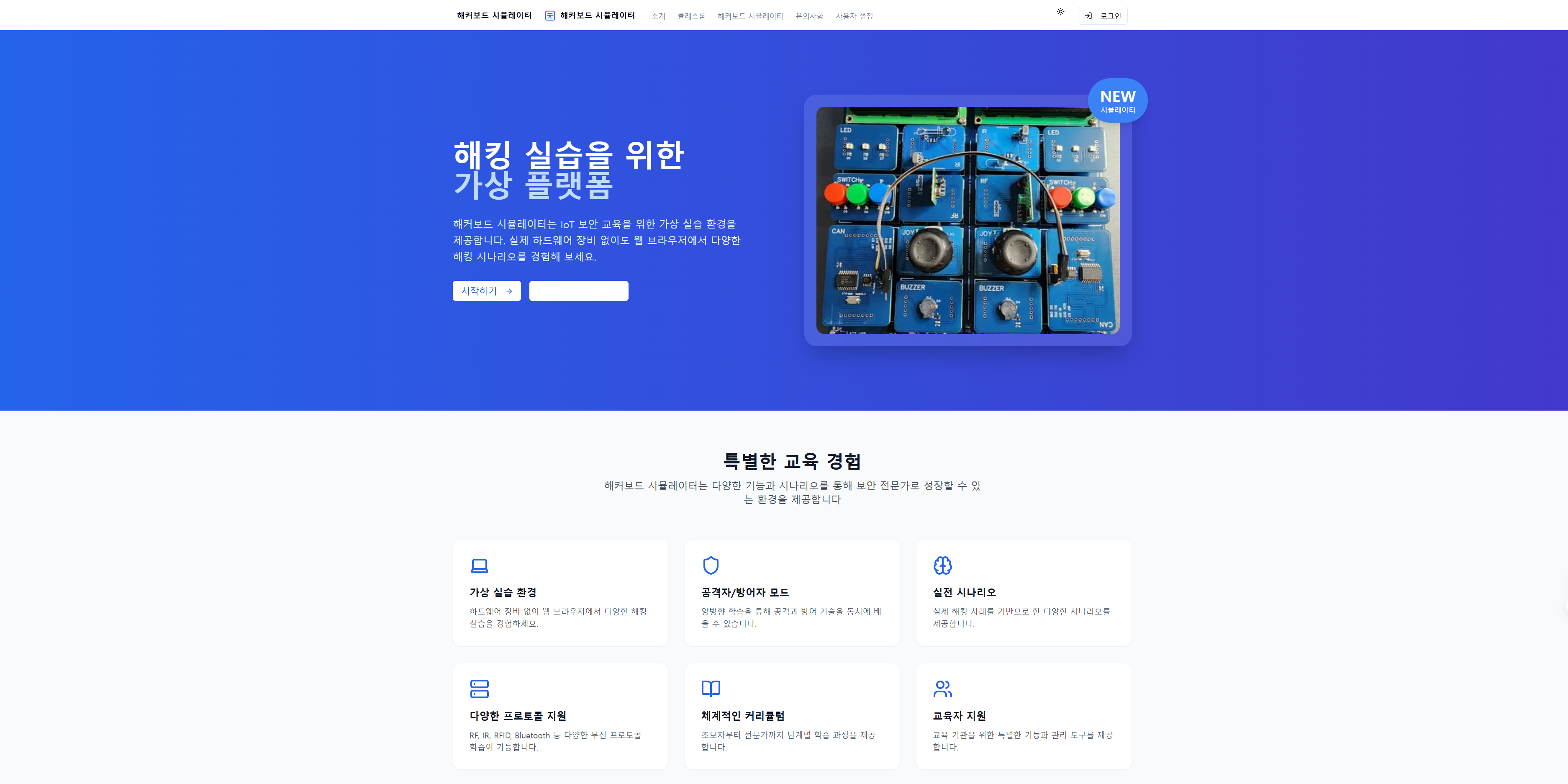 해커보드 시뮬레이터는 IoT 보안 교육을 위한 웹 기반 시뮬레이션 플랫폼입니다. 실제 하드웨어 없이도 IR(적외선) 통신 공격과 방어를 학습할 수 있는 교육용 도구로 개발되었습니다.